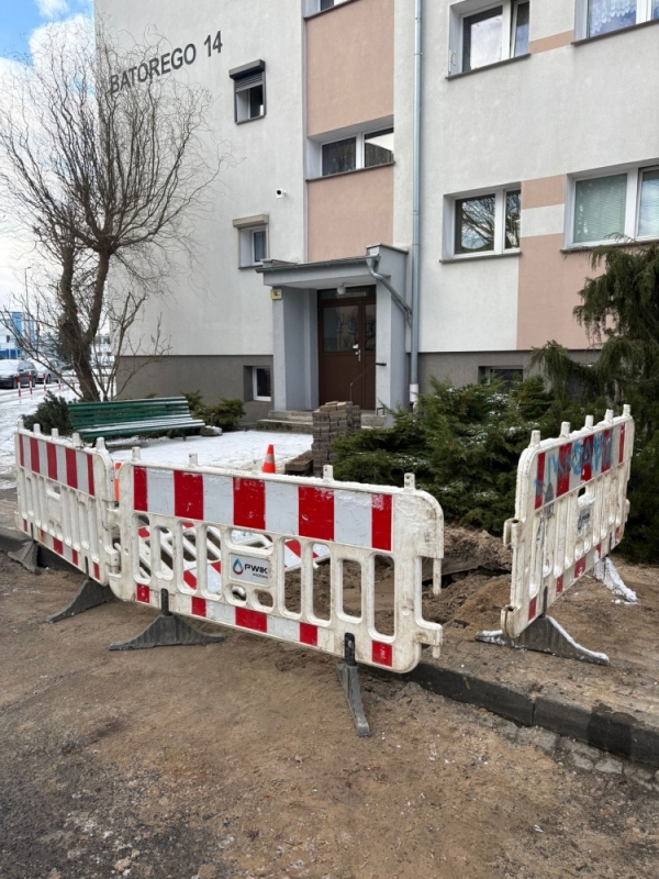 Informujemy, że w dniu 03.01.2026r. na osiedlu przy ul. Batorego wystapiła awaria na sieci wodociągowej, którą PWiK usuwa od wczesnych porannych godzin.