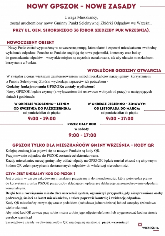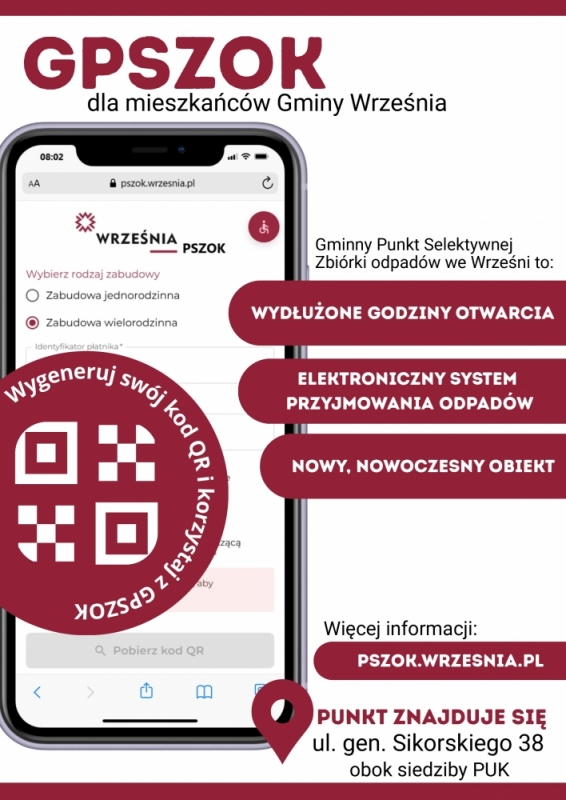 Otrzymaliście Państwo do skrzynek na listy kody QR niezbędne do okazania przy wywożeniu odpadów w Gminnym Punkcie Selektywnej Zbiórki Odpadów Komunalnych przy ul. Sikorskiego 38 we Wrześni.